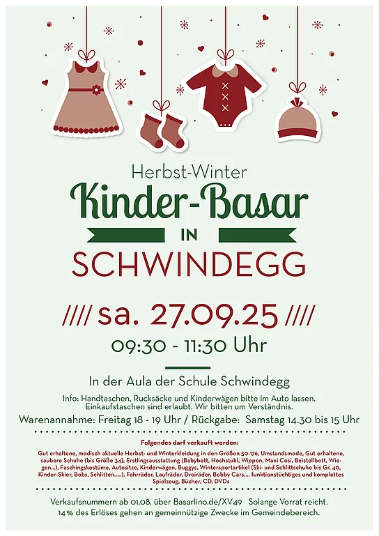 Kinder Basar Herbst / Winter Basar in der Grundschule Schwindegg