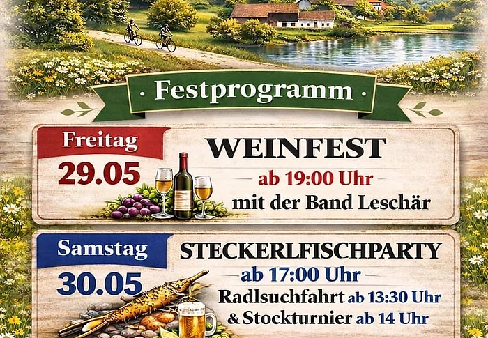ab 13:30 Radlsuchfahrt und Stockturnier ab 17:00 Steckerlfischparty und Preisverleihung